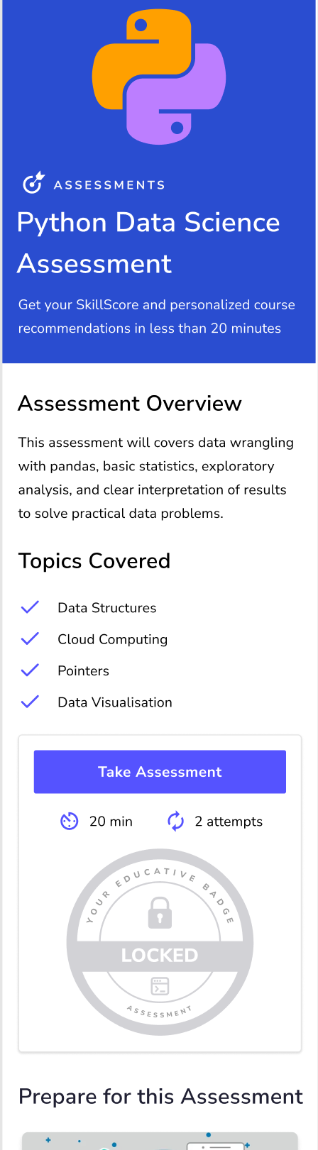 CTA and a locked badge to nudge the user to take the assessment and earn the badge