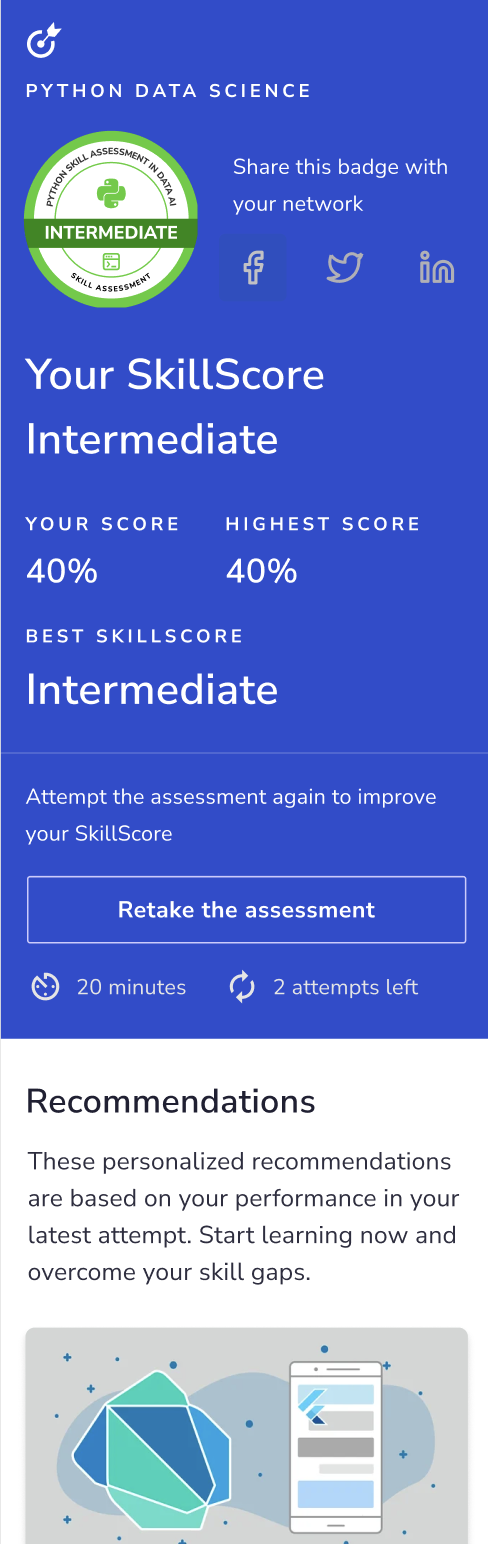 Skill Badge and ability to share on social media platforms