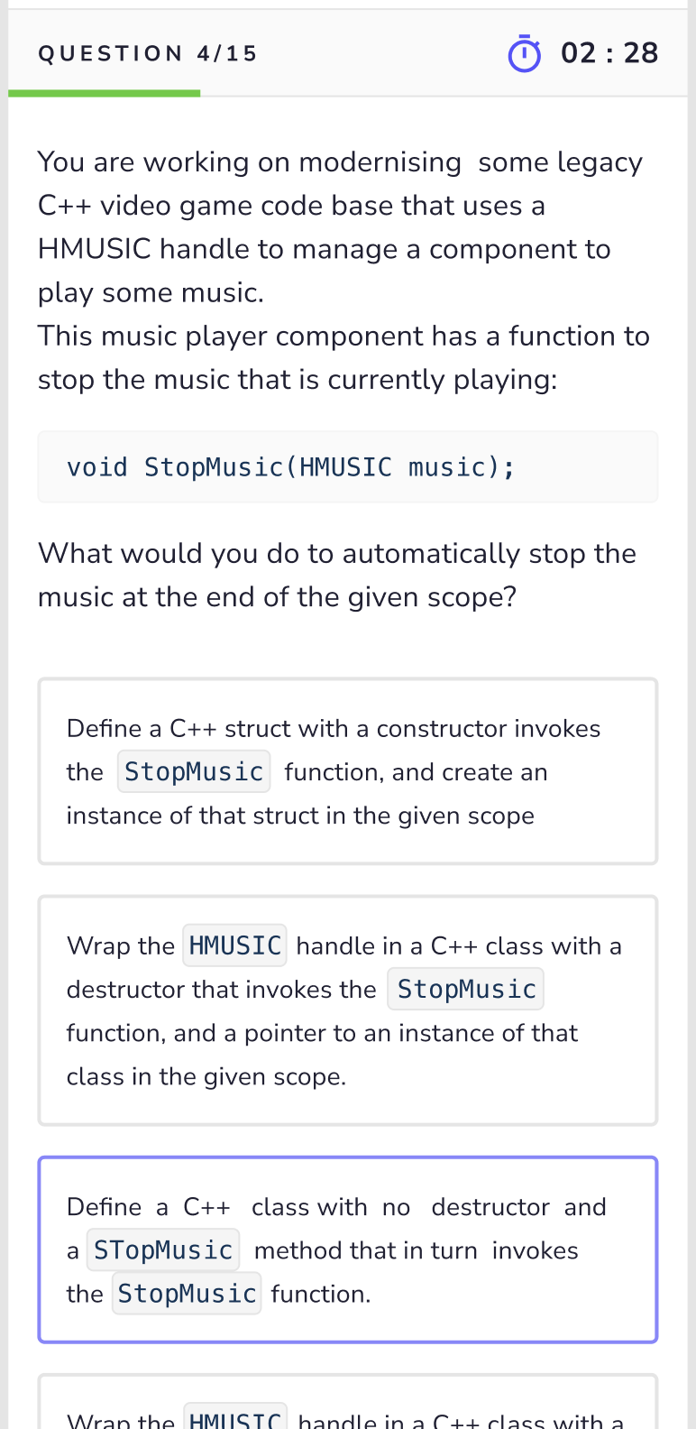 I added a light grey background color for options so it becomes easy to distinguish between the question and options